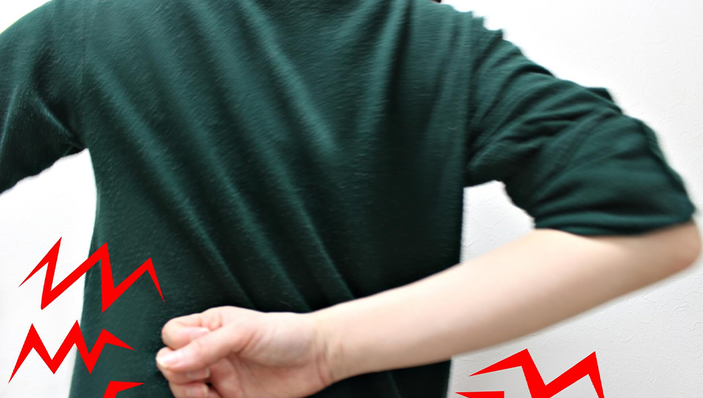 痛みが現れる部位は、肩甲骨周辺から腰の少し上あたりまでが一般的で、症状が強い場合にはあばら骨付近まで痛みが広がることもあります。